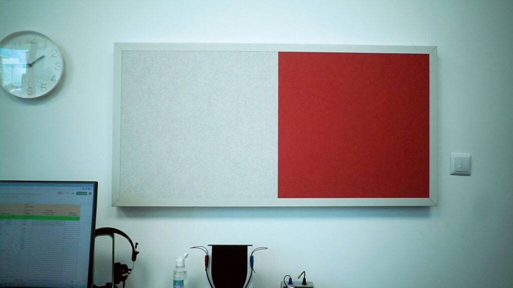 Серията акустични панели с видима метална рамка съчетава естетика, функционалност и екологична отговорност. Основата на нашите акустични панели включва полиестерна вата, акустичен плат и дървена рамка, които не само гарантират изключителна звуковаизолация и акустика, но и са напълно екологични.