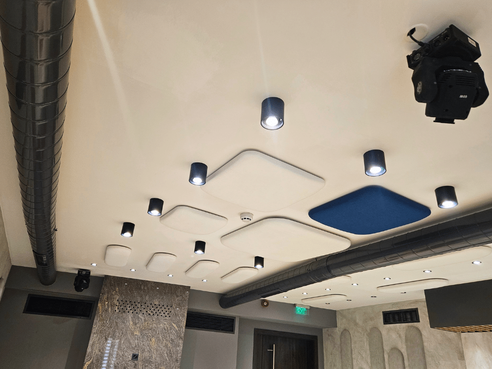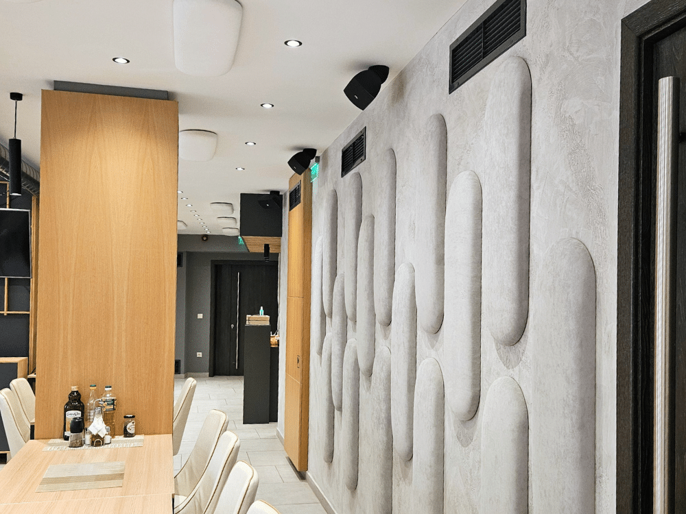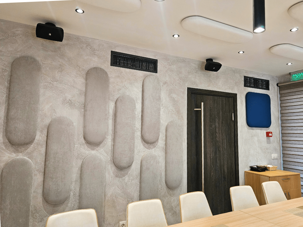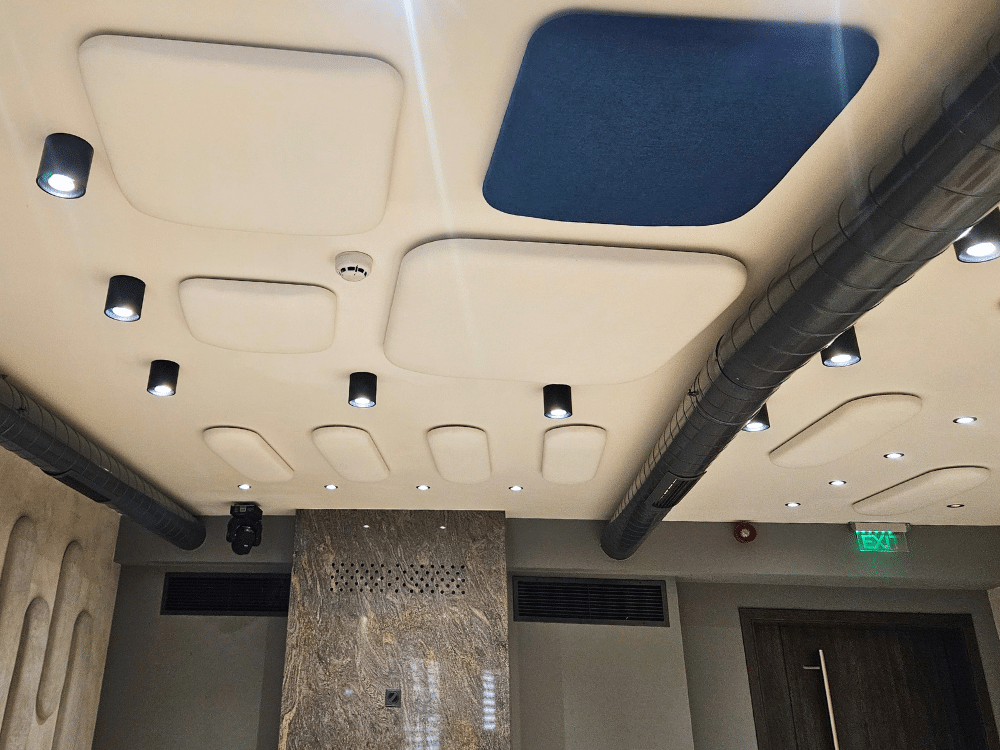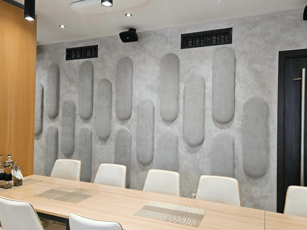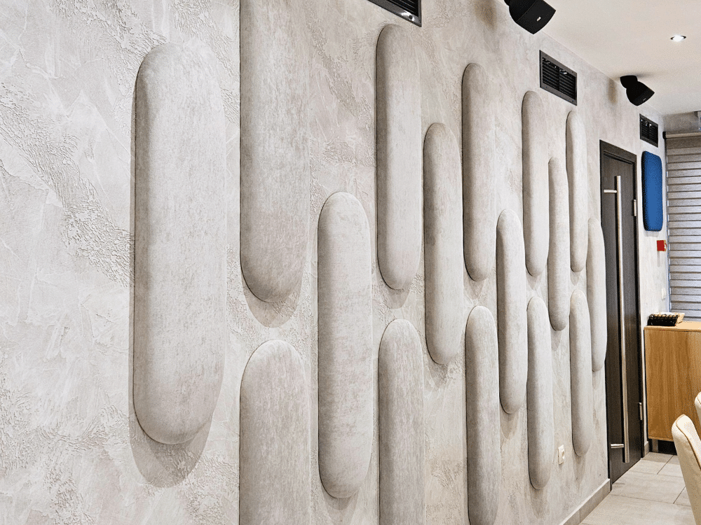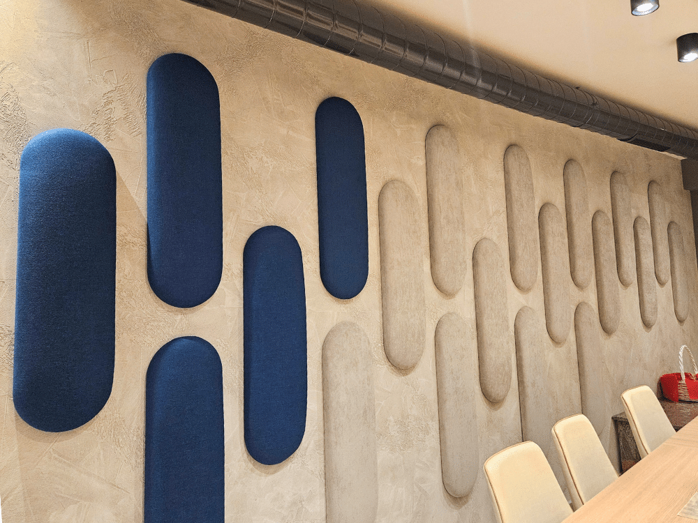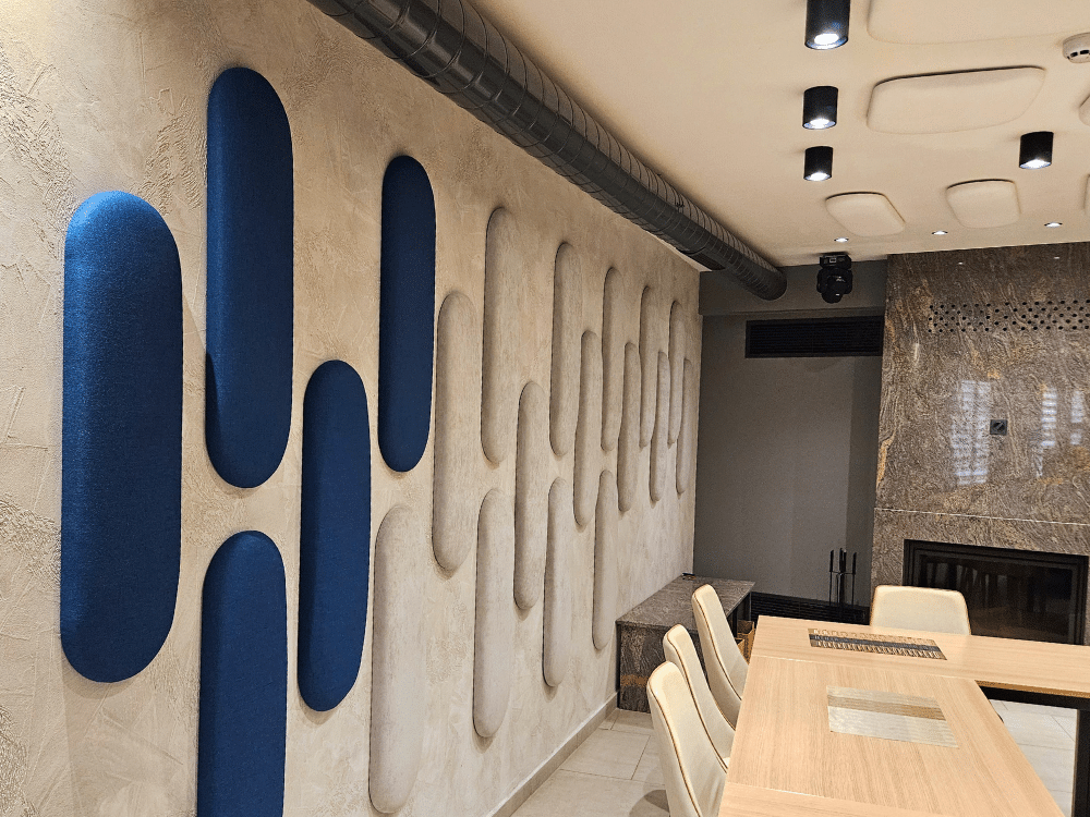 В рамките на 7 дни успяхме да произведем 100 броя панели от серията „Сенза“ в различни форми, цветове и размери, ръчно изработени за нуждите на клиента. За още два дни екипът на Acoustic Force успя да извърши и монтажа.