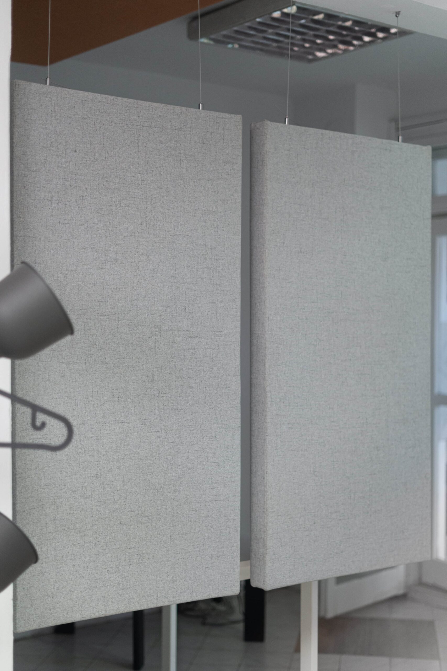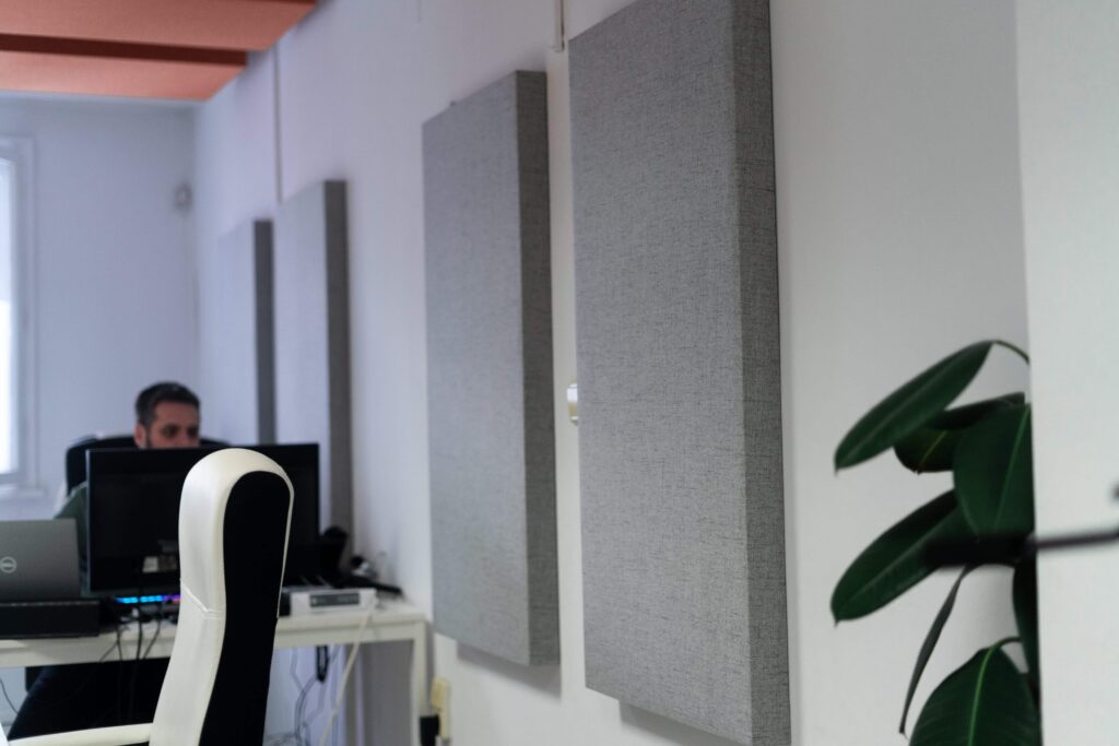 Изпълнението бе завършено в кратък срок, без да нарушим работния ритъм на компанията. Работихме в тясна координация с управителя и собственика на фирмата, за да гарантираме, че решенията отговарят на всички очаквания. Цветовете и формите на панелите бяха избрани от нашите дизайнери така, че да се вписват в интериора, като същевременно изпълняват акустичната си функция на 100%.