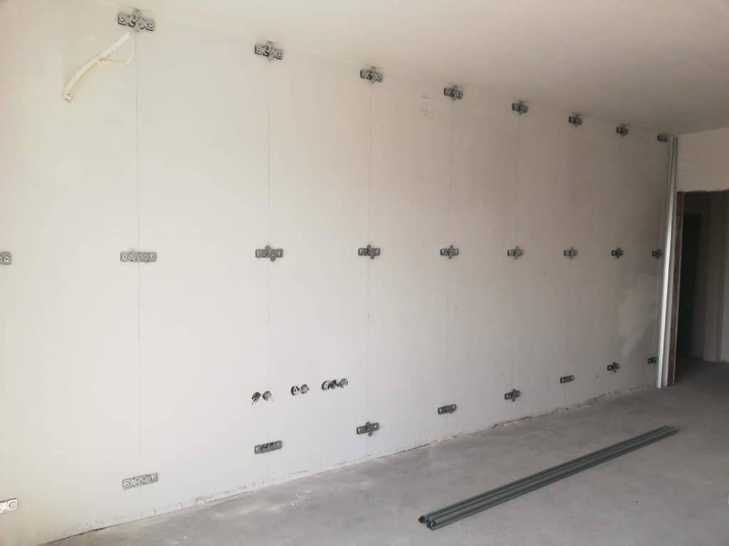 Инженерът на Acoustic Force реши да изпълни звукоизолация на стена със системата NIVELATOR SOUND. Тя може да бъде изпълнена със дебелина от 60мм и да постигне звукоизолация на тухлена стена 60dB.